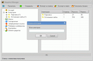 2. Далее перед нами открывается сам менеджер. Что бы добавить свой сайт в систему переходим в меню "Категории". Здесь мы через правую кнопку мыши создаём новую категорию (название любое).