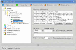 5. Настроиваем реферы. Для этого идём в меню "HTTP_referer'ы" Что такое реферы вы можете почитать в вики. Если кратко, то реферы это те страницы, откуда приходят пользователи на ваш сайт. Откуда взять реферы для вашего сайта? Наверняка ваш сайт добавлен как в Яндекс.Вебмастер и Google вебмастер , идём туда и ищем такое меню как популярные запросы - это те запросы по которым находят ваш сайт в сети. Копируем этот запрос, вставляем в менеджер, выбираем поисковую систему (откуда взяли этот запрос), выбираем страница поиска (яндекс и гугл показывают вам на каком месте ваш сайт по определённому запросу,помните что на каждой странице поисковика выдаётся по 10 сайтов. Т.е. если ваш сайт находится на 34 позиции, то страница = 3). Чем больше реферов тем лучше.